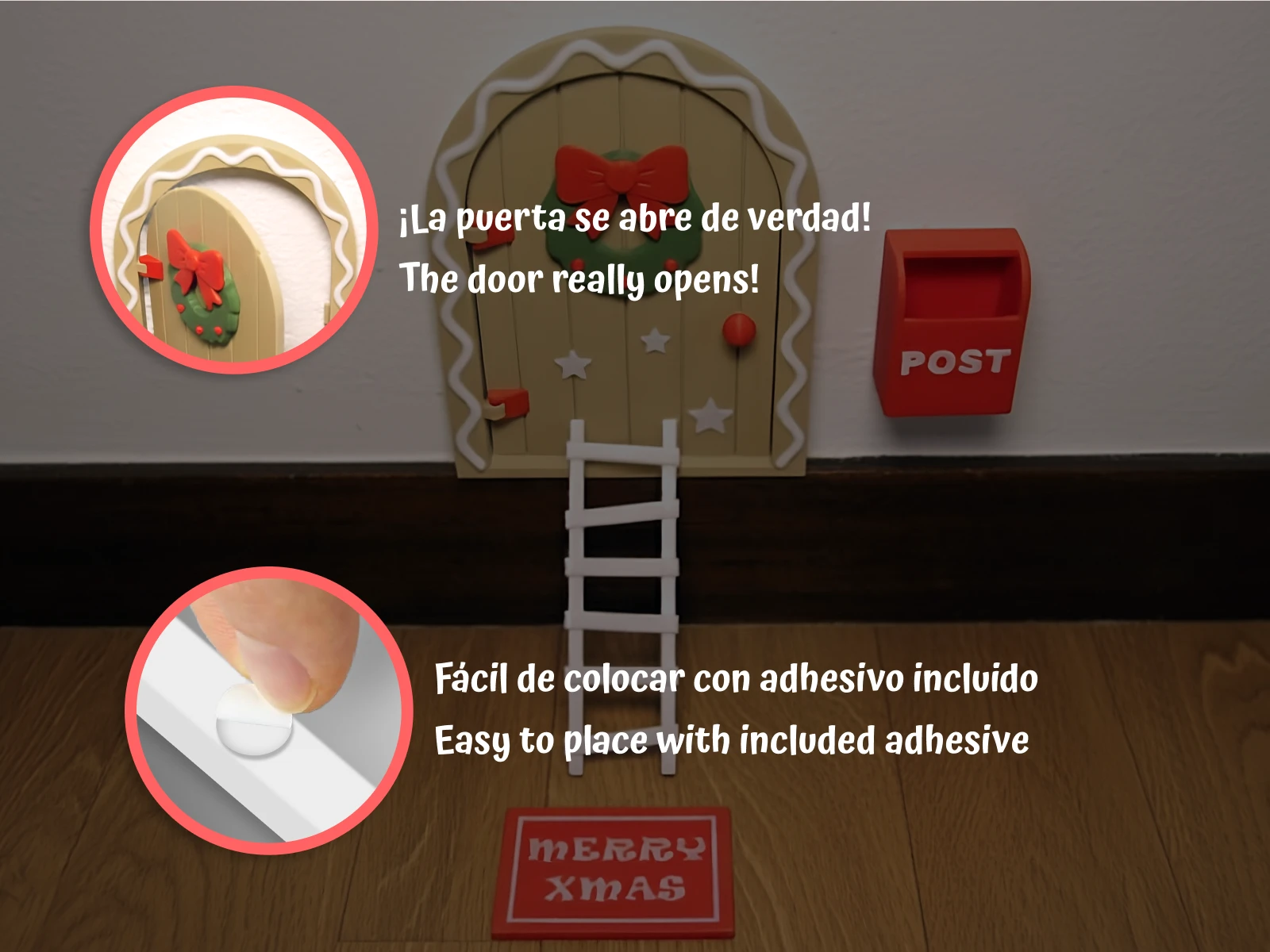 Designed and 3D-printed with durable materials, this door can be placed on the skirting board or directly on the wall using the included adhesive pads. Its detailed design even allows the door to open, a charming touch loved by both kids and adults alike.
