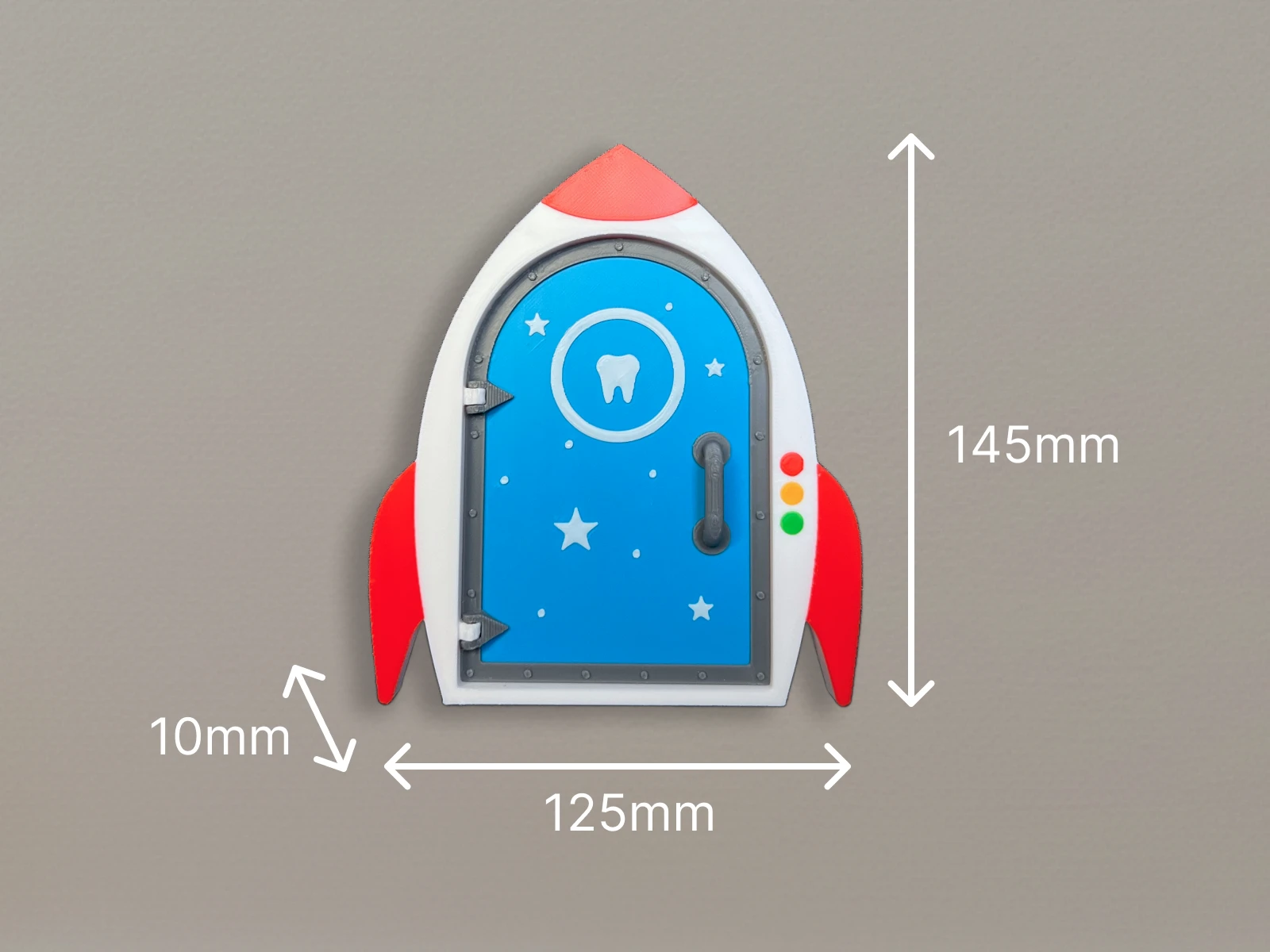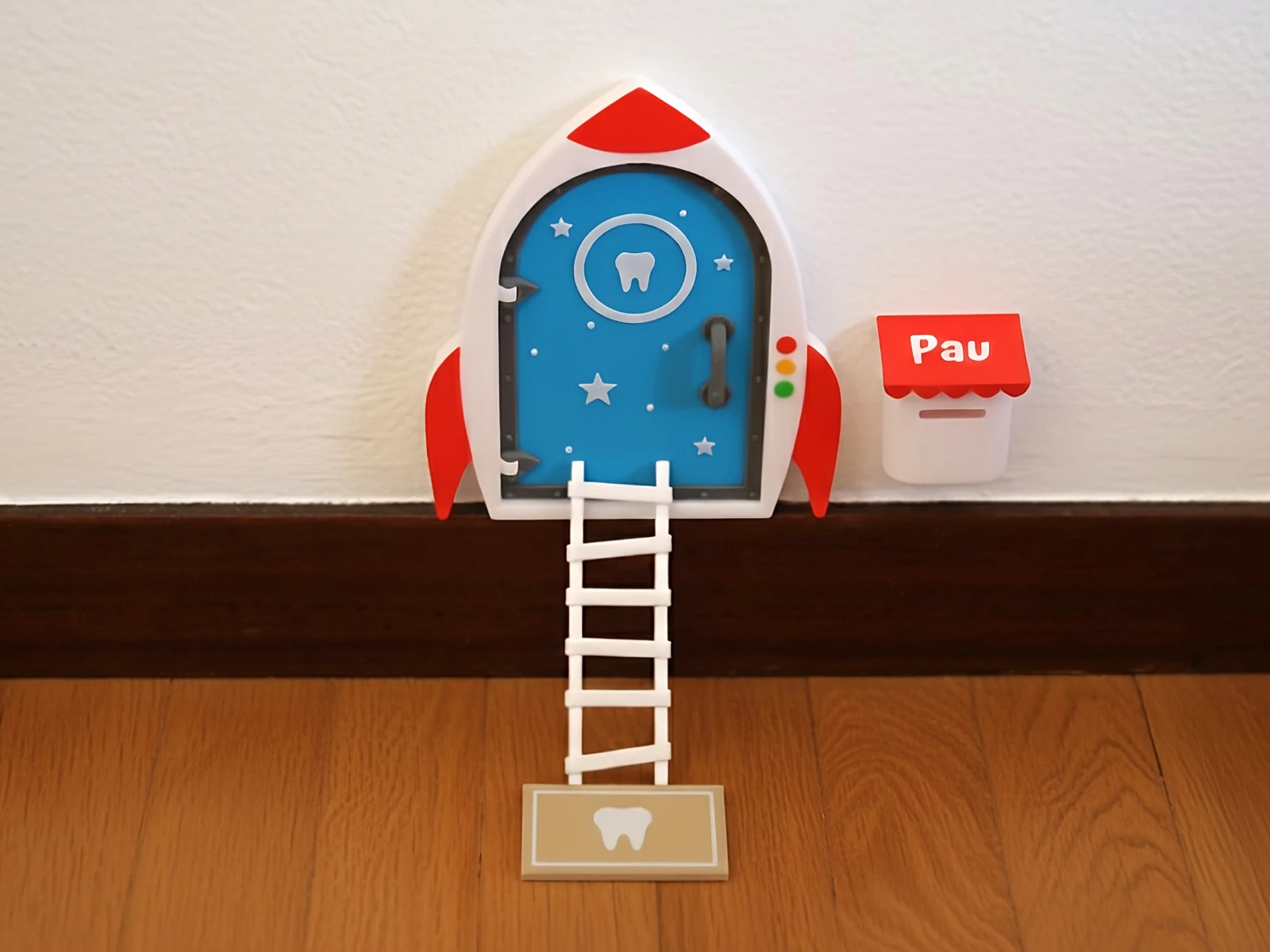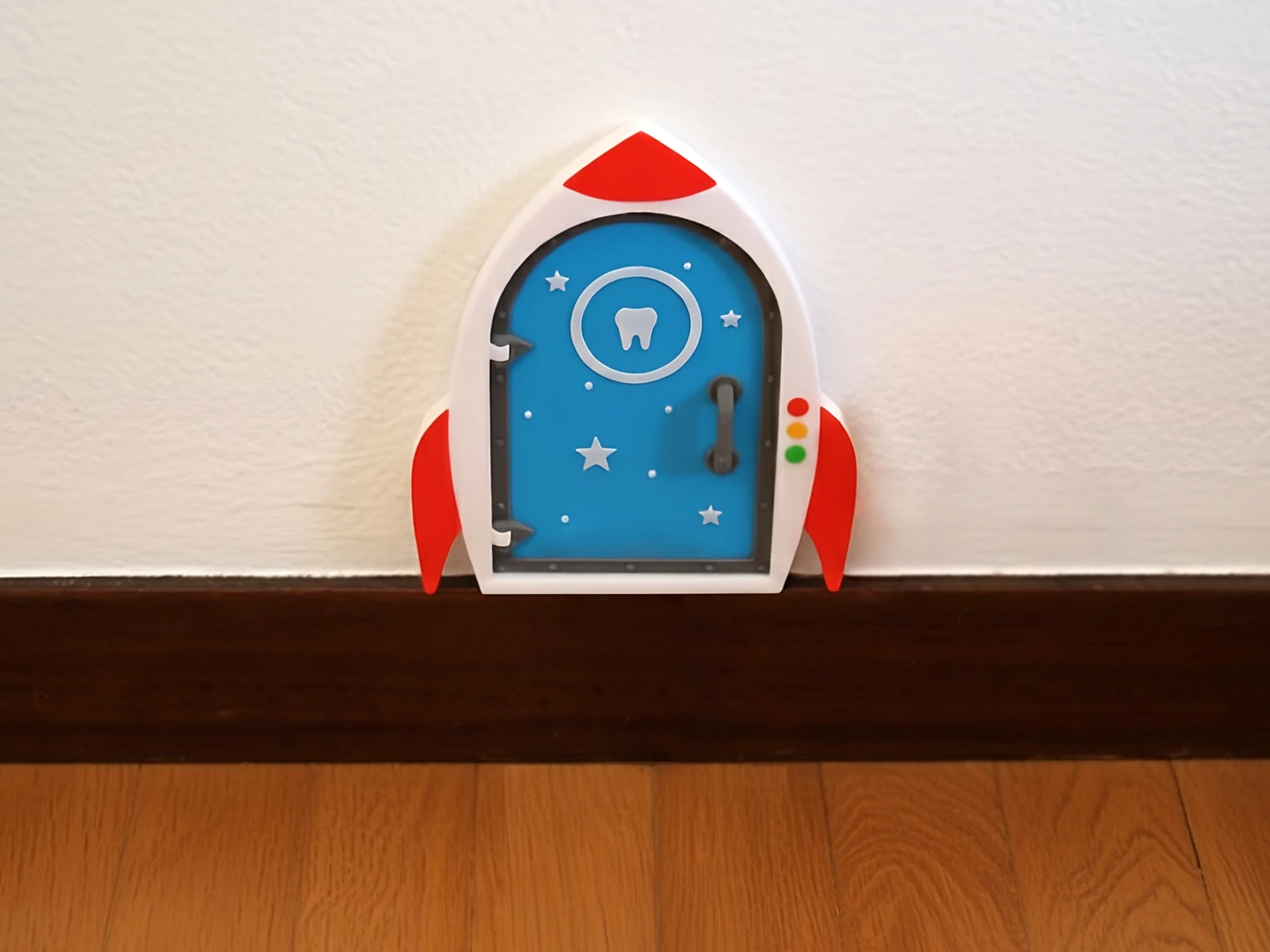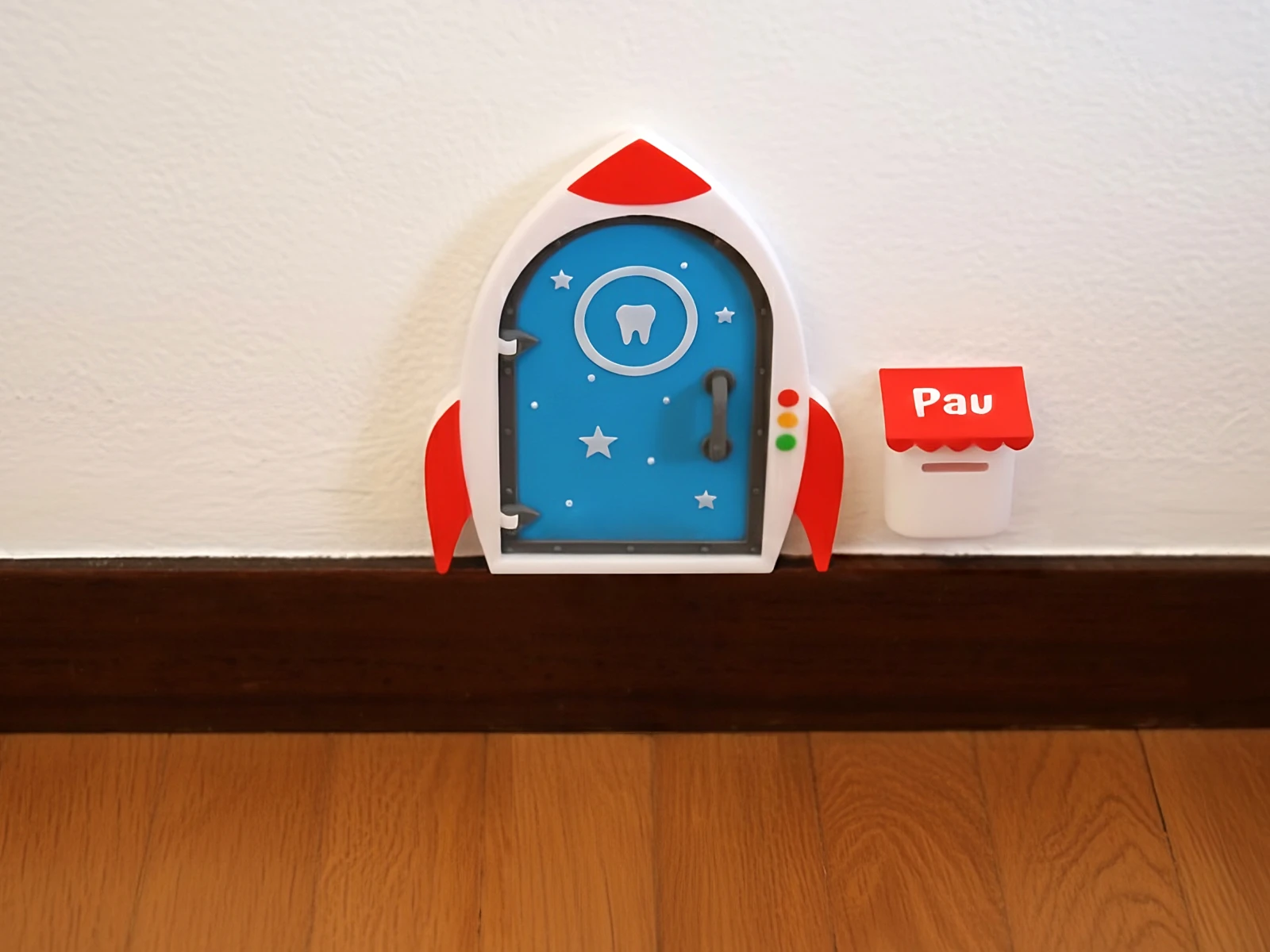 Convierte cualquier rincón de tu casa en un escenario lleno de magia con nuestra Puerta Ratoncito Pérez estilo Cohete Espacial, una pieza decorativa perfecta que añade un toque de aventura que enamora a niños y adultos
