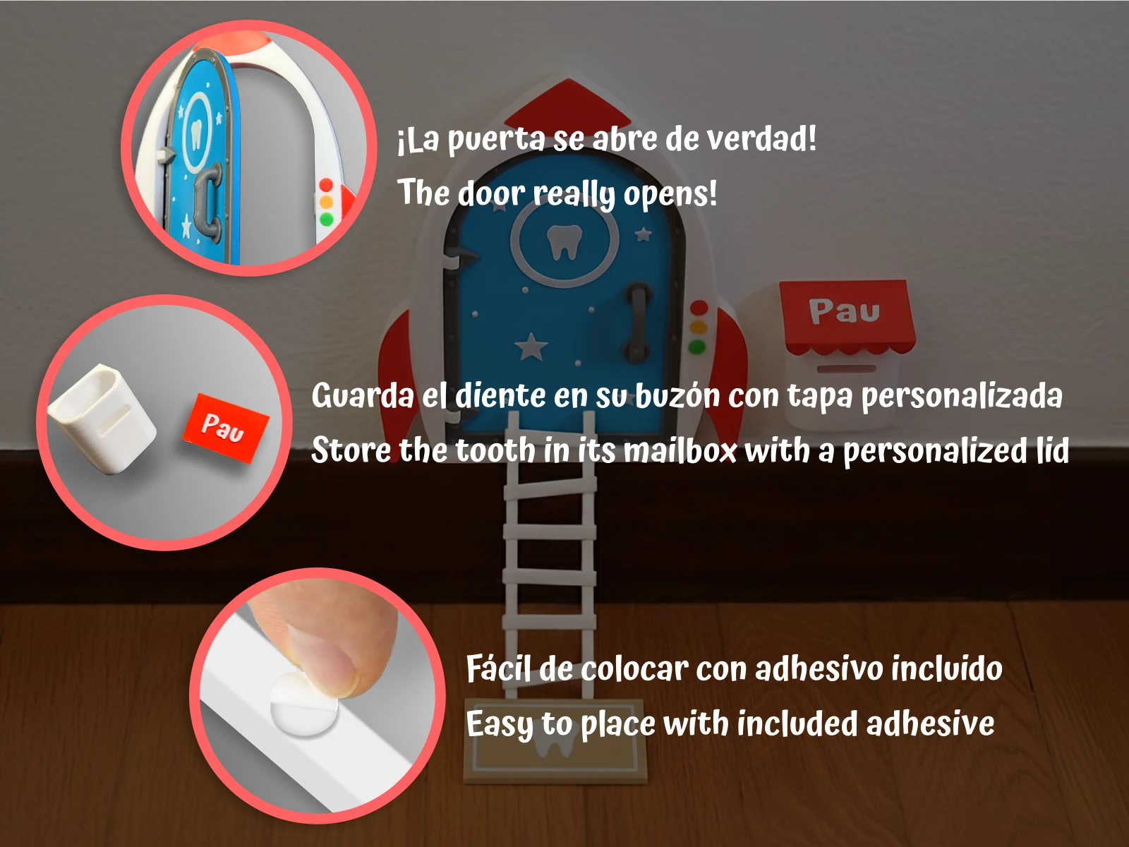 La opción de buzón con tapa personalizable añade un toque único, perfecto para que tu hijo o hija puede dejar su diente y viva la experiencia de una forma especial.